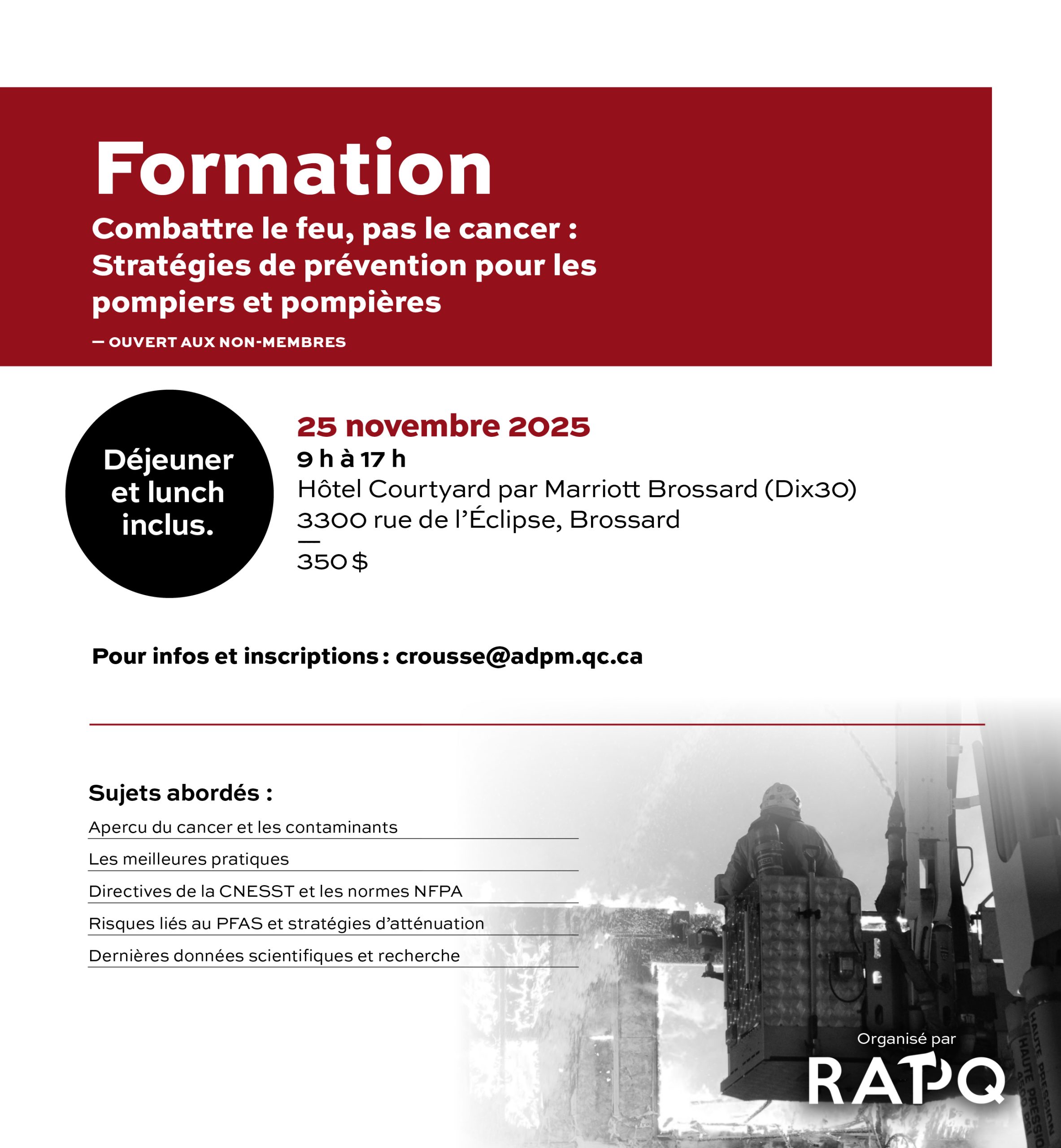 Aujourd’hui, le RAPQ est le moteur de presque toutes les avancées dans la protection et la reconnaissance des maladies professionnelles chez les pompiers à travers la province, représentant plus de 3 800 pompiers professionnels à temps plein.